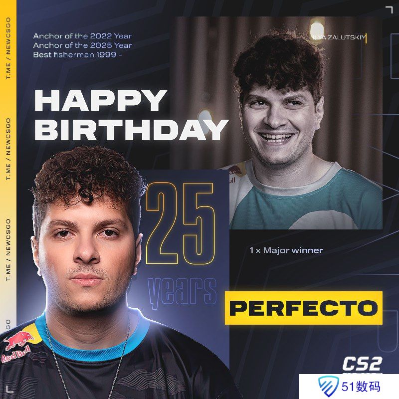 Natus Vincere战队选手,PGL 斯德哥尔摩Major冠军得主Perfecto的25岁生日。在他效力NAVI战队期间,不仅帮助队伍拿下了包括Major在内的诸多大型赛事冠军,更是完成了英特尔大满贯S3的成就。