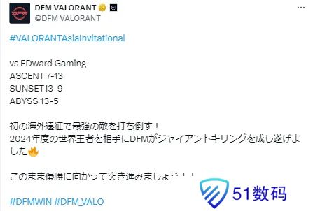 源能亚洲邀请赛瑞士轮DFM以2-1的比分战胜EDG,赛后DFM官推发文发表胜利喜悦,大意如下: