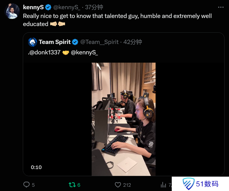 而kennyS也在社交平台上评论道:“很高兴认识这个天赋出众、谦虚且颇有教养的小伙子。”