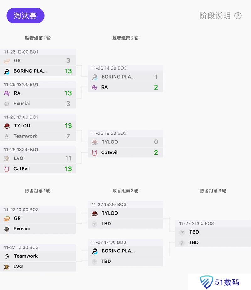 Lynn Vision在第一轮就已经掉入败者组。来到胜者组第二轮比赛,RA稳扎稳打,以2-1战胜BORING PLAYER成功拿下名额,而CatEvil则是延续了自己火热的手感,以2-0歼灭TYLOO,成为第二支晋级正赛的队伍。