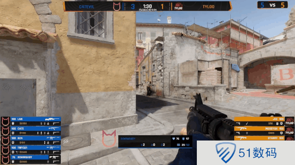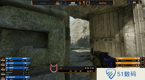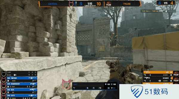 CatEvil选图,CatEvil先做进攻方,手枪局直接提速B区平推TYLOO。次回合TYLOO选择纯e。