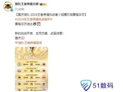 【重庆狼队·2024王者荣耀挑战者小组赛阶段赛程日历】