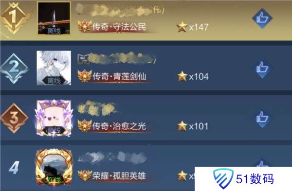 荣耀王者50颗星可能都要几十名开外,这还只是一名普通玩家的普通列表。