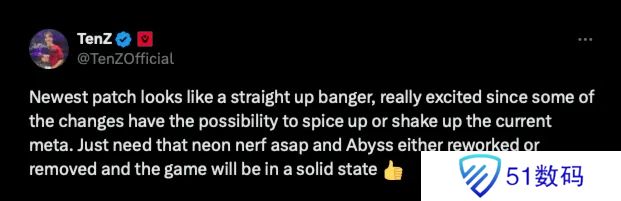 TenZ:新版本看起来很赞,只需要尽快削弱霓虹;处理Abyss
