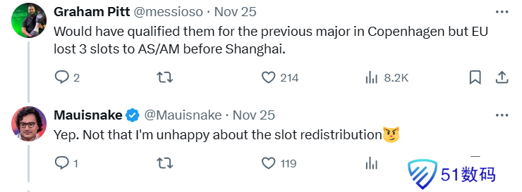 “假如是哥本哈根Major,那他们的战绩完全可以晋级,但由于上海Major 欧洲RMR被亚太赛区和美洲赛区分走了三个名额,因此他们只能遗憾出局了。”
