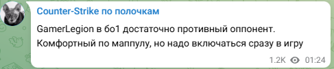 “GamerLegion在BO1的比赛中是一个相当可怕的对手。 你需要立即让自己投入比赛。”