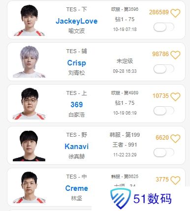 直播吧11月26日讯 LPL转会期正在进行,韩服统计小程序OBGG更新了头部战队的阵容,吧友们觉得哪支队伍更有冲击冠军的实力?哪支队伍流量拉满?哪支队伍花钱变向削弱?
