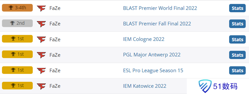 这是2022年FaZe取得的成绩: