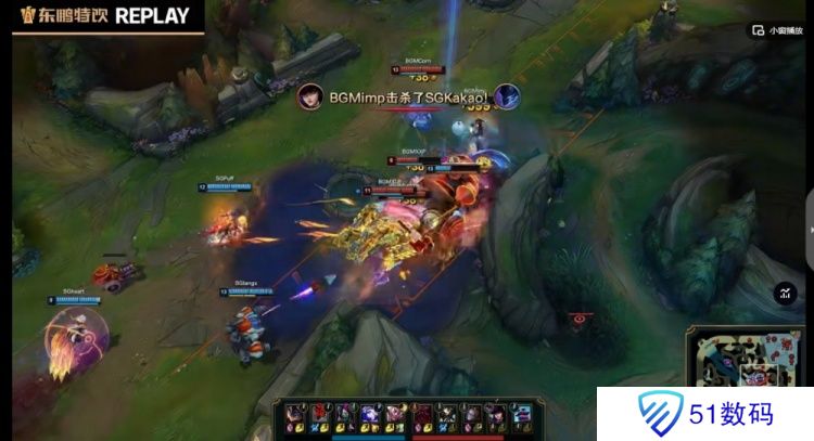 【22:35】中路BGM想开Puff艾希被他规避,回头艾希一箭命中Letme奥恩,这次虽然队友想救,但是Langx兰博给大配合进场的xiaocaobao阿卡丽成功切死后排的Imp女警!这波SG打出0换3之后回头拿下大龙!经济差4K!