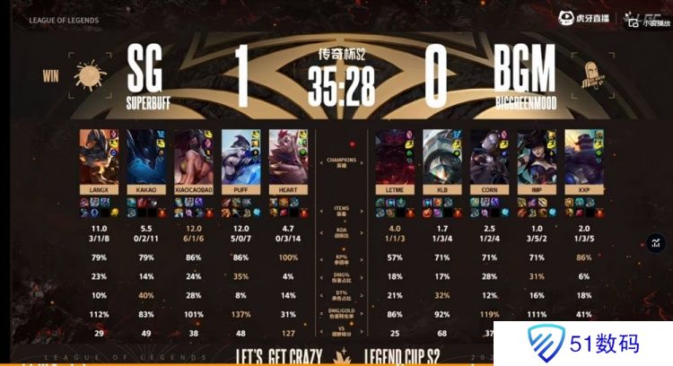 SG:上单Langx、打野Kakao、中单xiaocaobao、下路Puff、辅助Heart