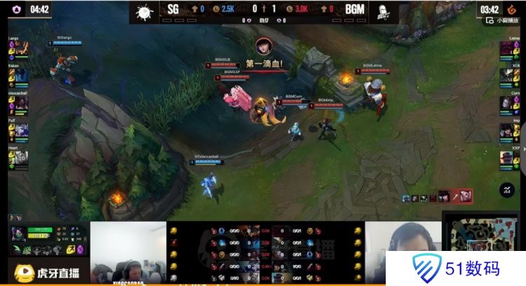 本局比赛BGM选出四保一女警体系,但是中单Corn的发条反而被xiaocaobao阿卡丽对线压制!中期Imp没有净化埋下伏笔,SG一波中下抓死BGM双C,推塔拉开经济差,随后的比赛Puff艾希连续神箭命中!Imp被SG集火强杀之后BGM没有输出点只能溃败!SG连续拿下两条大龙,最终在中路团再一次前后包夹切死女警,团灭BGM拿下第一局!