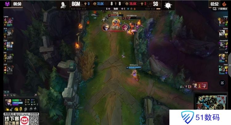 【22:50】龙魂团BGM不得不看,xiaocaobao乐芙兰配合队友Poke直接打残XLB蔚,Letme阿萝拉罩大四个但是队友根本跟不上,Imp图奇被打闪过墙壁,但是吃到Kakao盲僧Q+回旋踢没了!这波SG拉扯,0换5团灭BGM,拿下火龙魂+大龙!一万多经济差了!