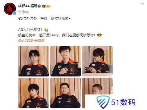 AG发布六人组候场照片:来一起开黑,我们在魔都高校等你!