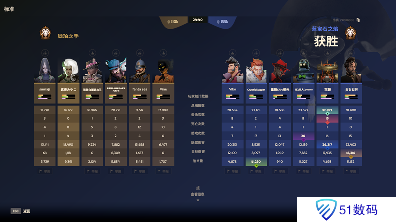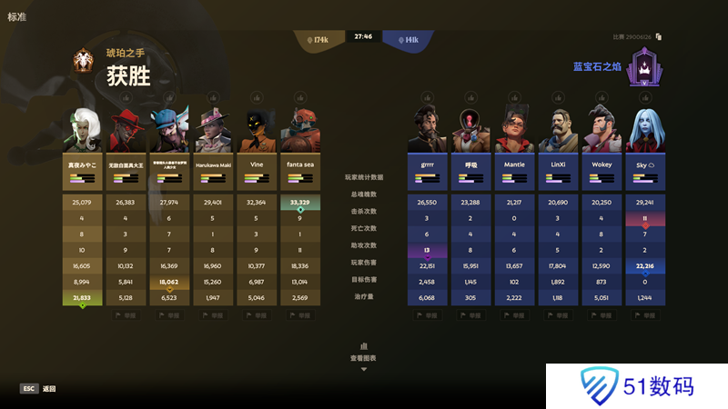可以看到输出不会低伤害也不会低,总体来说是一套很均衡的套路,在个人的输出和团队贡献上面都很不错,而且不怎么吃经济也能大出不俗的伤害,俗称吃草挤奶。