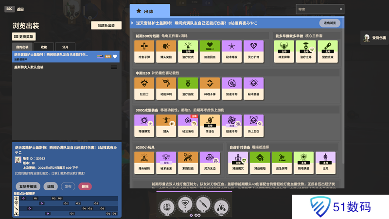其实这一套就是把原先盖斯特夫人要做的吸血蝗分成六根散布在几件辅助装备上面,这些装备配合2技能奶队友的同时也能增强自身的生存能力,核心依旧是混伤的一个打法,自身伤害不低的同时也有一定的团队作用,不过盖斯特夫人注定是一个比较吃枪法的角色,适合打法团队的枪男选手(这套平a和技能输出都不低)。