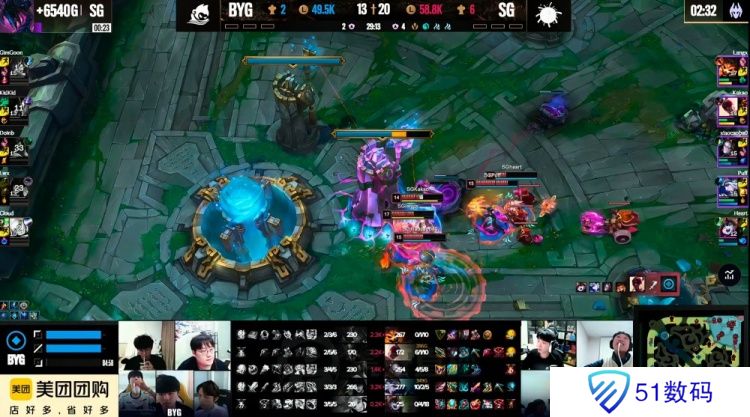 【19:28】第三条小龙刷新,SG拼惩抢下听牌龙!后续团战xiaocaobao发条吃到GimGoon阿萝拉大招被秒!Heart璐璐也被绕后切死!正面变大的纳尔孤立无援,Doinb阿卡丽二度进场被Puff艾希强行换掉!BYG打出1换4!