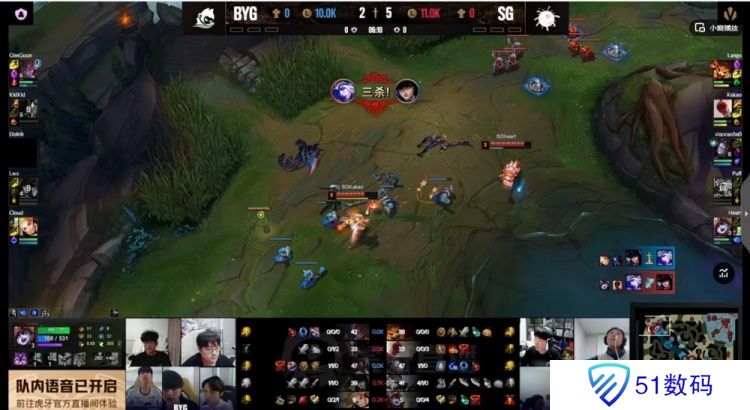 【17:08】SG推掉中一塔想强杀Lwx女警,但是Kakao盲僧没有踢回Lwx女警,反而被BYG反打换掉了野辅!BYG的0换2!