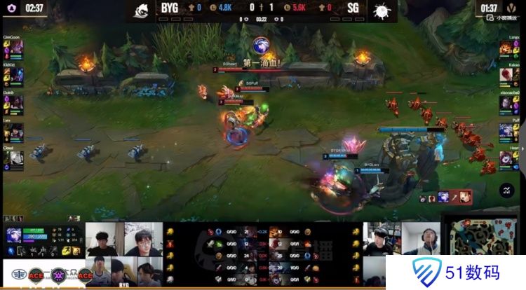 第一局比赛开局BYG下路组想干扰Kakao盲僧打野结果自己直接爆炸,SG前期拿下经济和资源的优势,小龙也给到BYG压力!中期BYG依靠两波打团一度拉回经济差!关键龙魂团Kakao盲僧单防Doinb阿卡丽,SG追击打出1换4,拿下风龙魂+大龙之后依靠Langx大纳尔绕后留住BYG两人,SG在下路二塔团战团灭BYG,一波赢下首局!