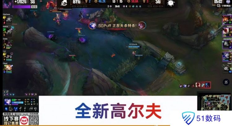 【5:27】kidkid雷克塞绕后gank打出xiaocaobao发条闪现,Doinb阿卡丽跟闪越塔强行和发条打了个1换1!随后上路交锋没闪的Cloud拉克丝被强杀,kidkid雷克塞支援配合Lwx女警,强行换掉了三杀的Puff艾希!这波相当于SG打了个2换4!但是随后BYG抓死Heart璐璐之后拿下2条巢虫!