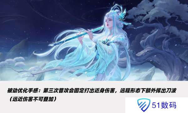 露娜第三次普攻改为固定打出近身伤害,远程形态下额外挥出刀波,相当于给露娜第三次远程普攻加了一段近身伤害。