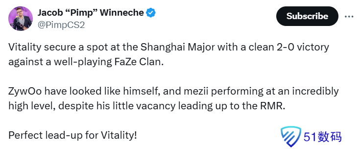Vitality成为第二支晋级Major正赛的欧洲队伍。