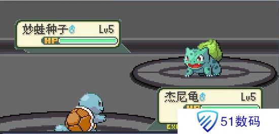 进入游戏,照例先是大木博士给介绍口袋妖怪的世界,然后是创建人物(留空的话就会有一个随机的中文名字)和劲敌(女的,以下以“小夏”称呼),这些大家都非常熟悉了。创建完成后正式开始游戏。拿完怪兽之后正准备出去,没想到小夏从身后追上来要求对战。也没什么别的招数,一直使用撞击就能结束战斗(胜负无所谓,个人认为赢了比较爽)。战斗之后主角可以回去和妈妈对话回复一下体力,然后往上走到1号公路。
